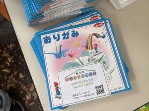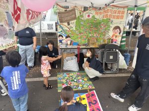 10月19日 福祉まつり 記事公開日: 2025/10/21 イベント 10月19日(日)府中駅前けやき並木で開催された、福祉まつりに参加しました。 時折り小雨がぱらつく天候でしたが、多くの親子が足を止めて、わなげや折り紙釣りを楽しんでくれました。